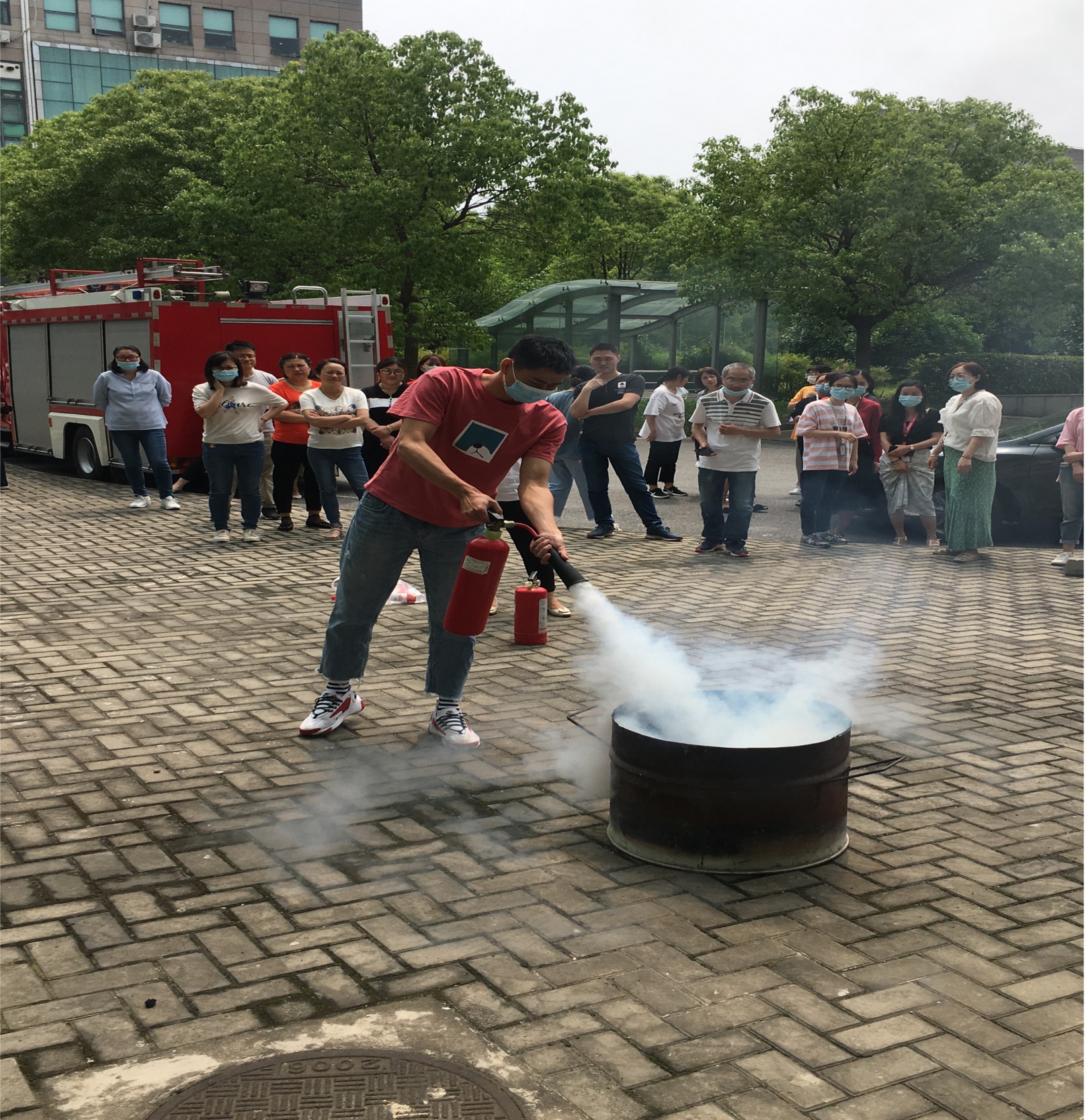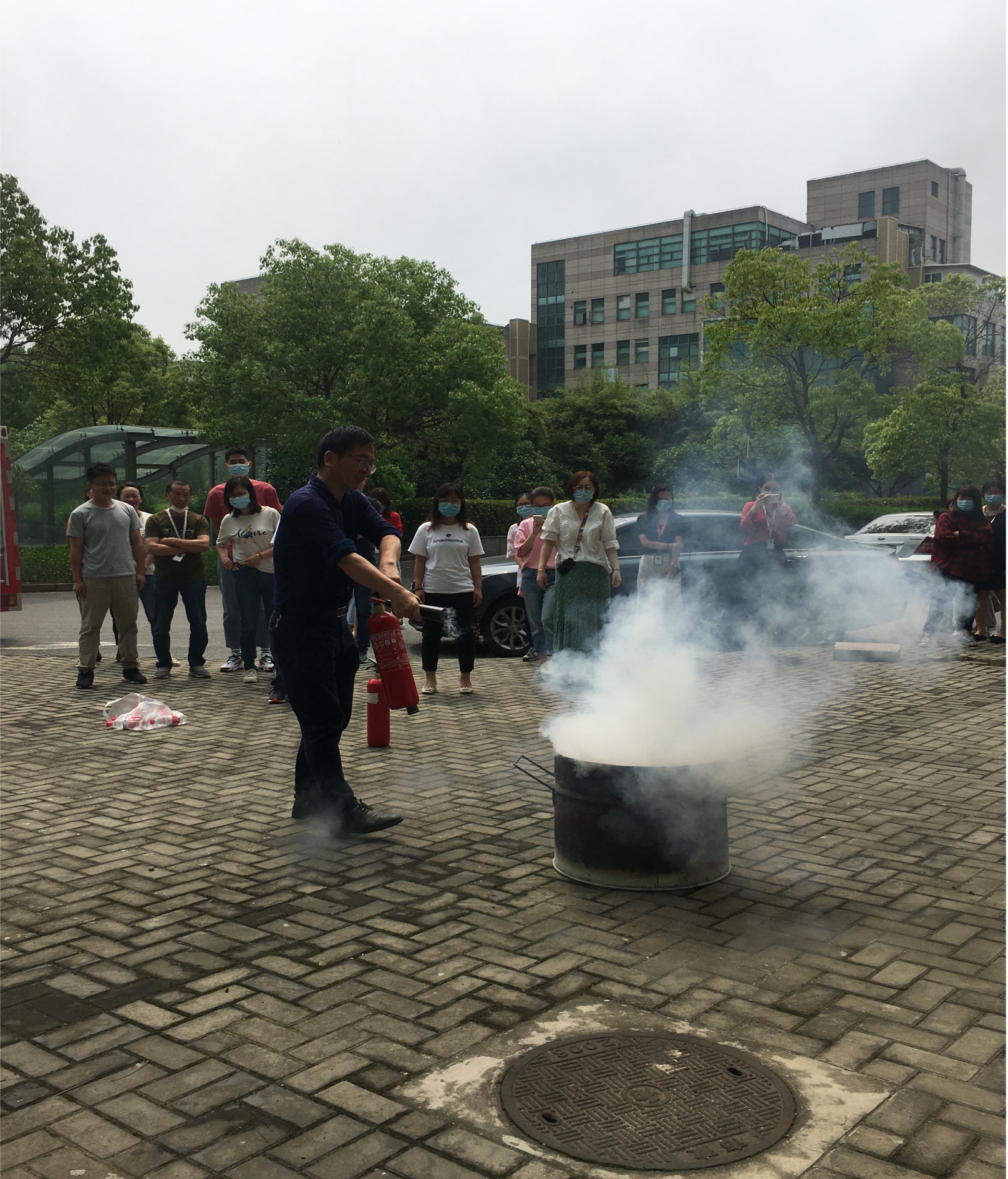 消防安全培訓結(jié)束后,消防人員還組織參訓人員開展了油桶滅火的演練。