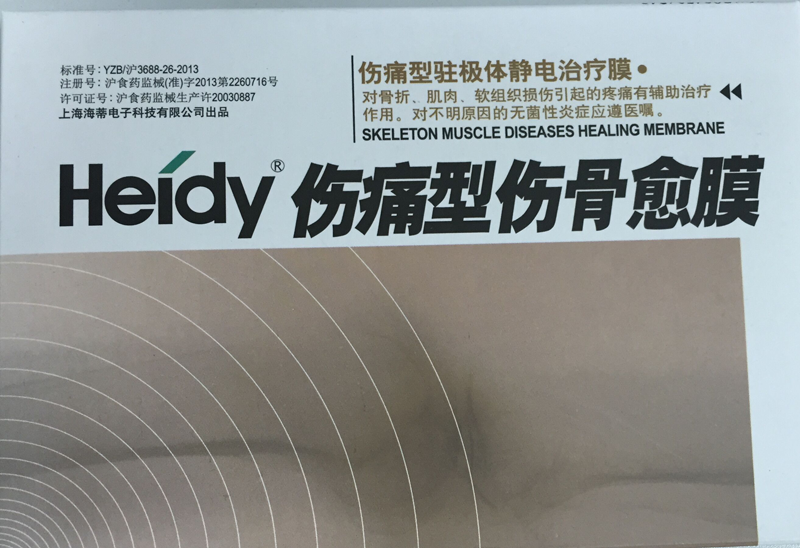 駐極體傷骨愈膜由上海交通大學(xué)研制,可有效糾正傷痛或病變部位的駐極態(tài)失衡,恢復(fù)人體組織的正常駐極態(tài),從而消除或緩解病痛。其制造技術(shù)和工藝居國際領(lǐng)先地位,是對創(chuàng)傷醫(yī)學(xué)的一大貢獻(xiàn)。